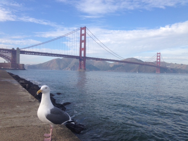 Tomorrow comes and we head to Twin Peaks, a pair of hills measuring 925 feet in elevation. We climb to the top of one of the hills, not knowing if it’s the South or North peak, and snap a few photos of the city off in the distance. Satisfied, we drive to the world famous, Golden Gate Bridge. We hike to a pier to eat lunch and admire this impressive 2-mile long masterpiece. After snapping nearly 100 photos, I understand why this is the most photographed bridge in the world. I even convince unusually brave birds to take photos with me and the bridge by bribing them with bread crumbs.. Not having gotten our bridge fix for the day, we head to the Bay Bridge, connecting San Francisco and Oakland. This bridge is one of the longest in the United States and utilizes a double suspension and two decks. We cross the lower deck and arrive at Treasure Island to watch the sunset over the city. Since Misha is taking the California Basic Educational Skills (CBEST) Exam at 7:30 the next morning, we smartly agree to conclude our adventure for the day. We cross the bridge again, this time along the more scenic upper deck, before heading back to Sunnyvale.